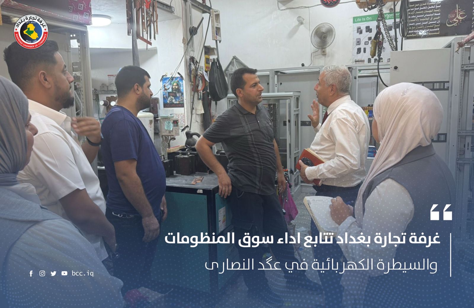 غرفة تجارة بغداد تتابع اداء سوق المنظومات والسيطرة الكهربائية في عگد النصارى